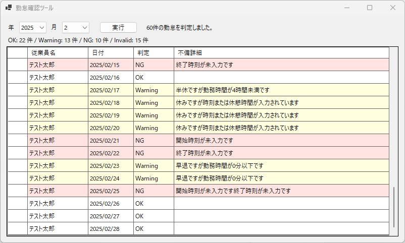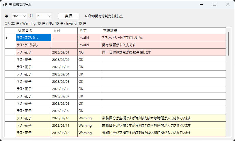 勤怠データ不備判定ツールです。