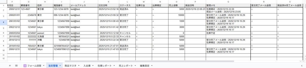 注文管理と在庫管理をスプレッドシートで行っている方向けに作成した