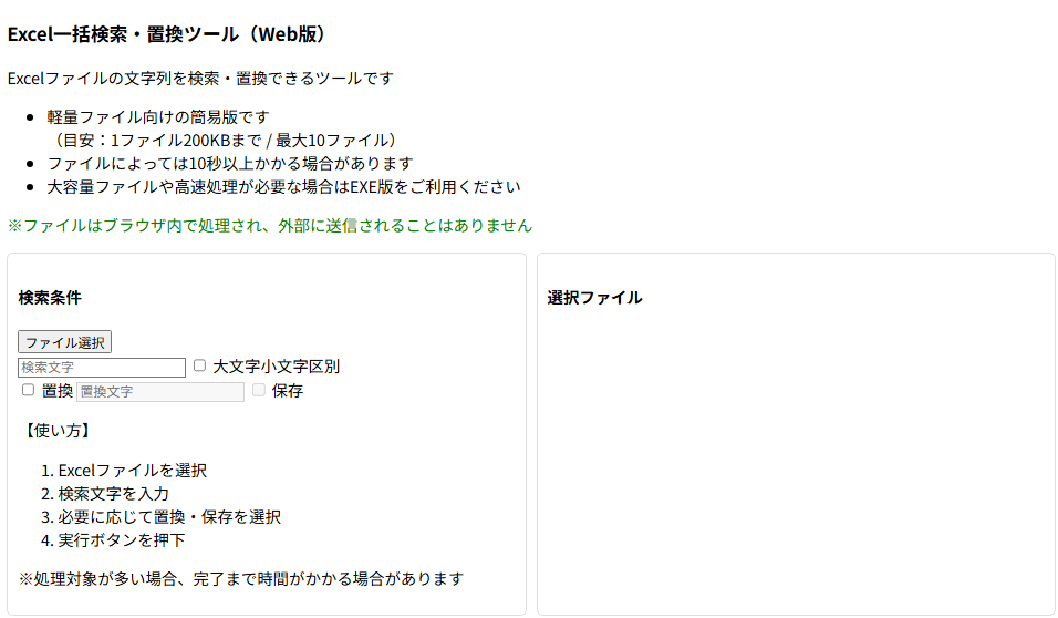 ブラウザで使えるExcel検索・置換ツール(無料)